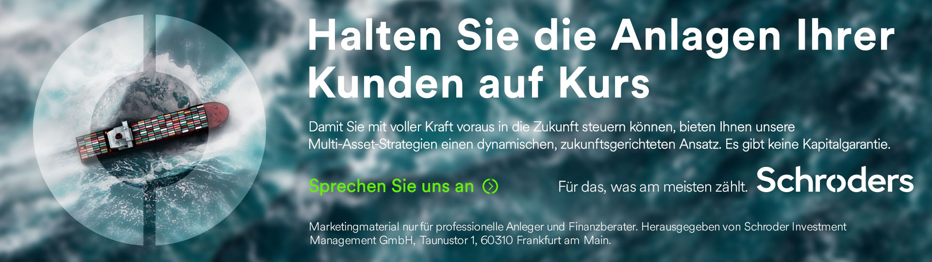 Die Vermögensverwalter von Schroders blicken auf mehr als 200 Jahre Erfahrung zurück. Ihre Aufgeschlossenheit gegenüber Innovation ist Tradition. Global aufgestellt, bringen sie Expertise und eine kritische Größe mit, um unter wechselnden Marktbedingungen Renditen zu erzielen. Mit Lead-Manager Ingmar Przewlocka hat Schroders einen renommierten Multi-Asset-Spezialisten ins Boot geholt, der gemeinsam mit Co-Fondsmanager Philippe Bertschi den Fonds Schroder ISF* Global Multi-Asset Balanced A Acc EUR verwaltet.