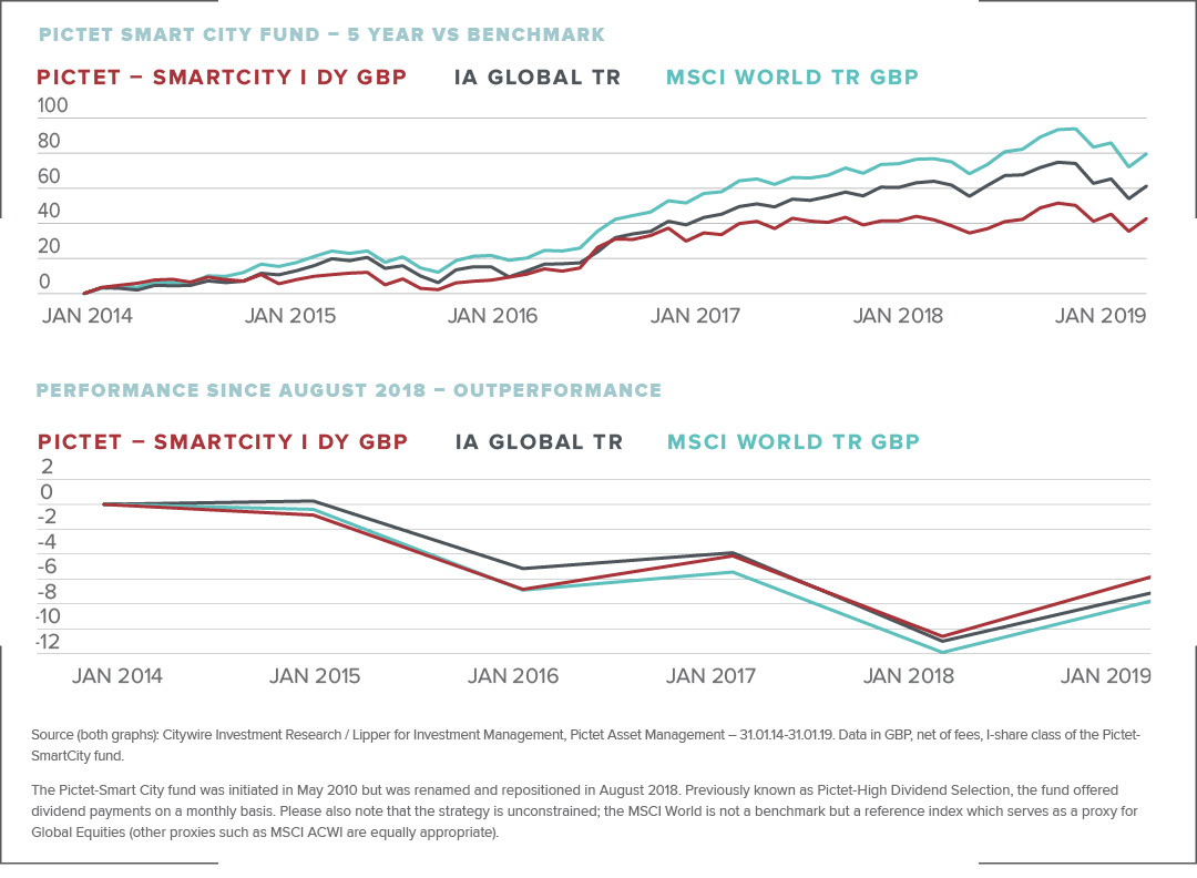 The Pictet SmartCity fund was launched last year with the SmartCity strategy approximately six months old. The fund was repositioned and renamed SmartCity in 2018 replacing a high dividend yield fund established in 2010.