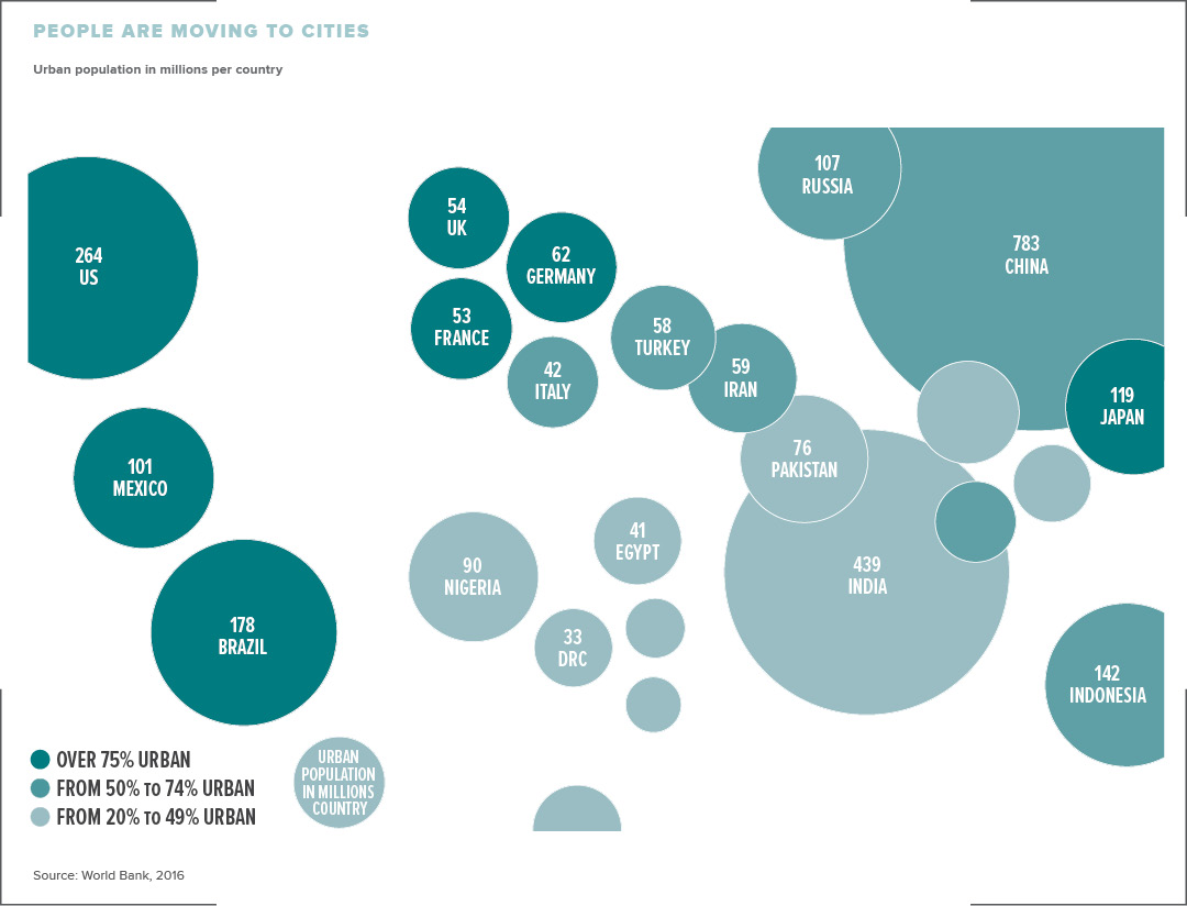 Just how big is the opportunity set? By 2045, an extra two billion people will live in urban areas, which will put huge pressures on infrastructure, resources and the environment.